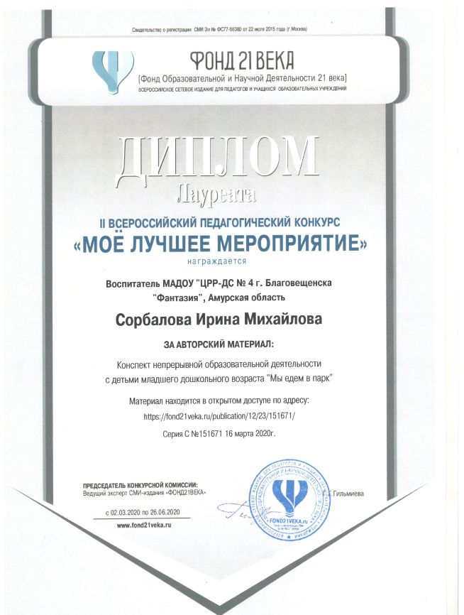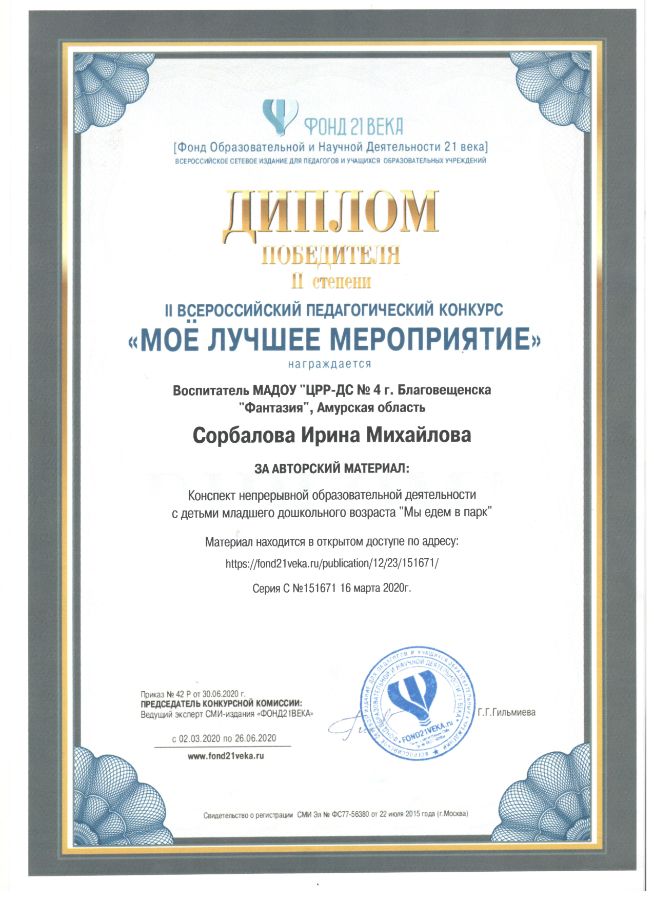 - «Разработка методического продукта как результат профессионального творчества педагога», ГАУ ДПО «АмИРО», 01.02.2021-05.02.2021,